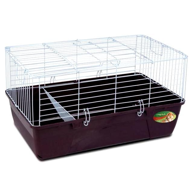 Клетка для грызунов. Такая клетка может подойти как для кроликов так и морских свинок. В комплекте держатель для сена. Доступ в клетку сверху. Цвет решетки: белый. Цвет поддона: зеленый, синий, коричневый.