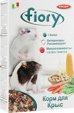 FIORY смесь для крыс. Смесь специально разработана для домашних крыс. Для обеспечения разнообразной и сбалансированной диеты, были включены продукты, которые по своим характеристикам, помимо того, что обеспечивают полноценный ежедневный рацион, превращают процесс питания в требующее времени занятие. Сбалансированное питание – залог прекрасного самочувствия, здоровья и прекрасного внешнего вида домашней крысы. Корм содержит крокетки, зерновые, фрукты и овощи, арахис, морковь и горох, которые обогащают организм крысы необходимыми элементами, дают ей энергию и силу. Кроме того, смесь обладает потрясающим вкусом и ароматом.