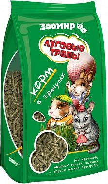 Гранулы "Луговые травы" изготовлены иp травяной витаминной муки с добавлением зерновых компонентов, предназначены для кормления кроликов, морских свинок, шиншилл, дегу и других грызунов, основу рациона которых составляют растительные корма.
