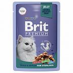 Консервы Brit Premium для взрослых стерилизованных кошек утка с яблоками в желе