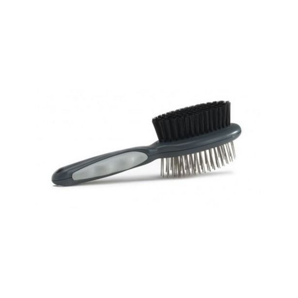 Щетины из нержавеющей стали помогают удалить подшерсток. Мягкие щетины на обратной стороне ухаживают за шерстью, приглаживают ее.