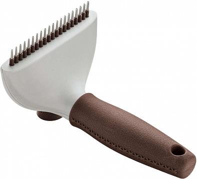 Расческа-грабли для собак с густой шерстью. Один ряд вращающихся зубцов. Обеспечивает быстрое и эффективное вычесывание отмершей шерсти. Пластик. Нержавеющая сталь. Груммерские инструменты фирмы Hunter имеют яркую упаковку, что выгодно выделяет их на полке среди аналогичных товаров других производителей и привлекут внимание к ним конечных покупателей.