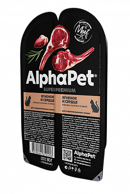 Консервы AlphaPet Superpremium для взрослых стерилизованных кошек, мясные кусочки в желе Ягненок и сердце