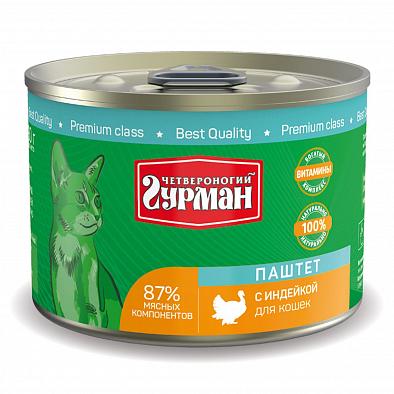 Состав: индейка (не менее 20%), курица, мясные субпродукты, крупа рисовая (не более 3%), плазма крови, желирующая добавка, клетчатка, масло подсолнечное, рыбий жир, дрожжи, таурин. Питательная ценность в 100 г продукта: протеин — 8,7 г, жир — 6 г, клетчатка — 0,5 г, зола — 2 г, таурин — 0,2 г, влага — 82 г. Минеральные вещества (в 100 г продукта): P — 92,7 мг, Ca — 9 мг, Na — 152 мг, Cl— 188 мг, K — 189 мг, Mg — 11, Fe — 2 мг, Cu — 26 мкг, Co — 1 мкг, Mn — 43 мкг, I — 1,4 мкг. Витамины: А— 240 МЕ, Е — 0,4 МЕ, В1 — 0,03 мг, В2 — 0,09 мг, В3 — 0,92 мг, В5 — 0,27 мг, В6 — 0,08 мг. Энергетическая ценность: 95 ккал.