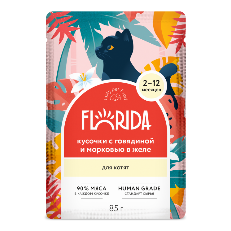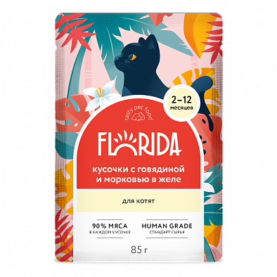 Консервы Florida для котят кусочки с говядиной и морковью в желе