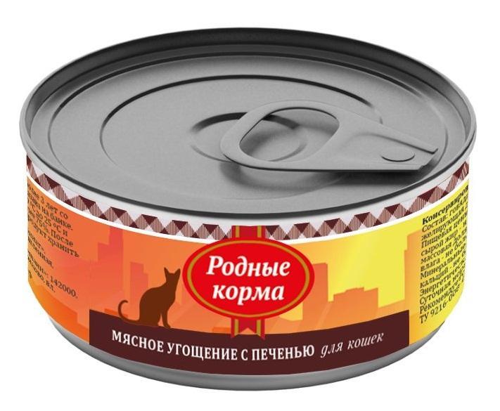 Консервы Родные Корма мясное угощение с печенью для кошек