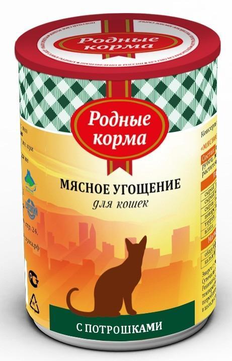 Консервы Родные Корма мясное угощение с потрошками для кошек