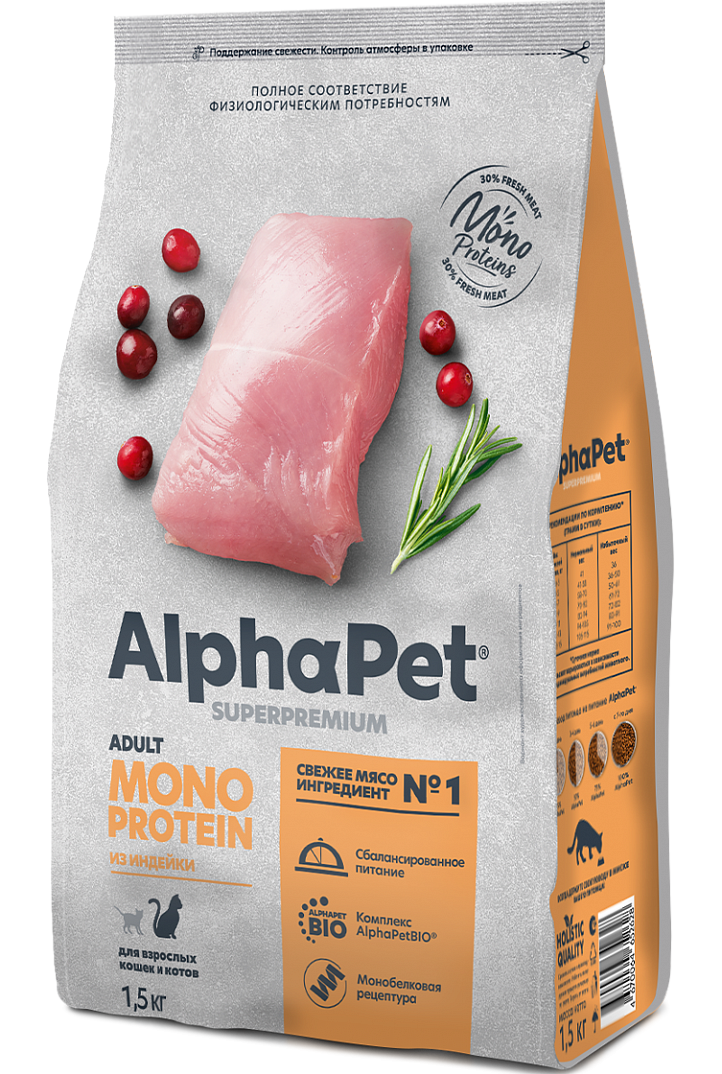 Монобелковая рецептура - благодаря единственному источнику животного белка подойдет животным с пищевой непереносимостью Свежее мясо ингредиент №1 в составе Большой процент мясного белка Уникальный комплекс натуральных добавок AlphaPetBIO® Высшая категория качества Holistiс (холистик) Низкозерновая рецептура Поедаемость и вкусовая привлекательность проверены в собственном центре AlphaPet Не содержит пшеницу, кукурузу и глютен Бережная технология производства, сохраняющая вкусовые и питательные свойства свежего мяса Не содержит ГМО, искусственных красителей и ароматизаторов Ингредиенты, пригодные в пищу человеку, уровня Human Grade