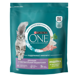 Сухой корм Purina ONE для взрослых кошек с чувствительным пищеварением с индейкой