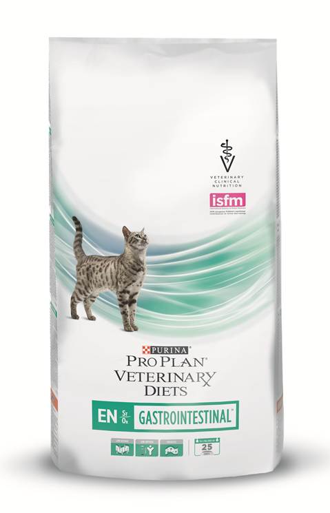 Сухой корм для кошек Purina Veterinary Diet EN Gastroenteric рекомендуется в качестве диете при: гастрите, энтерите, диарее, печеночного липидоза (избыток жира в печени).