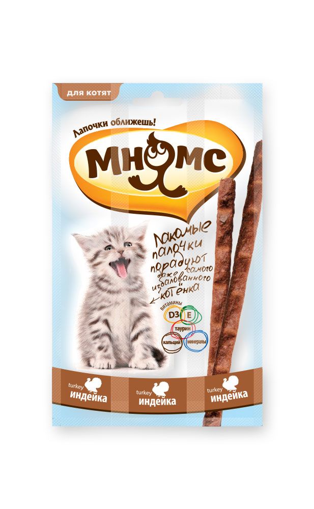 Мнямс лакомые палочки для котят с индейкой 3x3 г