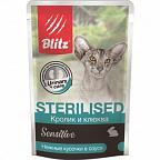 Консервы Blitz Sensitive Sterilised пауч для стерилизованных кошек и кастрированных котов кусочки в соусе Кролик и клюква