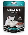 Консервы Gina для взрослых кошек, филе тунца и кальмары в желе
