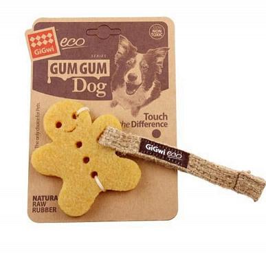 Изготовлена из 100% не токсичной сырой резины и натуральных веревок-ремешков (хлопок, лен). Материалы гибкие и прочные, не приносят вреда зубам и деснам щенков и собак