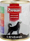 Консервы Четвероногий Гурман для собак, мясной рацион с ягненком