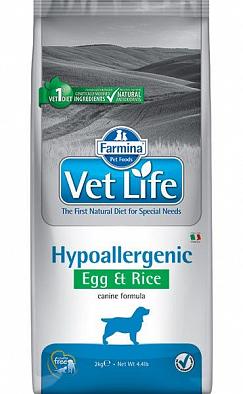 Farmina Vet Life Hypoallergenic Egg & Rice, содержит яйца, как единственный легко усваиваемый источник белка высокой биологической ценности и рис, как единственный источник углеводов, что обуславливает гипоаллергенные свойства диеты. Повышенное содержание незаменимых жирных кислот способствует снижению воспалительных процессов в коже и ее производных.