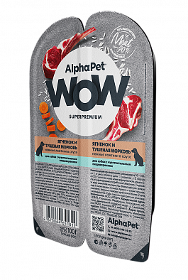 Консервы AlphaPet WOW для собак с чувствительным пищеварением, ломтики в соусе Ягненок и тушеная морковь