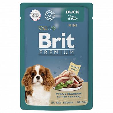 Полнорационный влажный корм премиум класса с уткой и яблоком в соусе для взрослых собак мини-пород Нежные кусочки мяса в ароматном соусе - идеальное сочетание для полноценного и сбалансированного рациона. Паучи Brit Premium однозначно заинтересуют вашу собаку и станут для нее любимым блюдом. Влажный корм премиального качества содержит 75 % свежего мяса и все необходимые витамины и минералы для ежедневного рациона. Паучи отлично дополнят полнорационный сухой корм Brit Premium и внесут разнообразие в питание Вашего питомца.