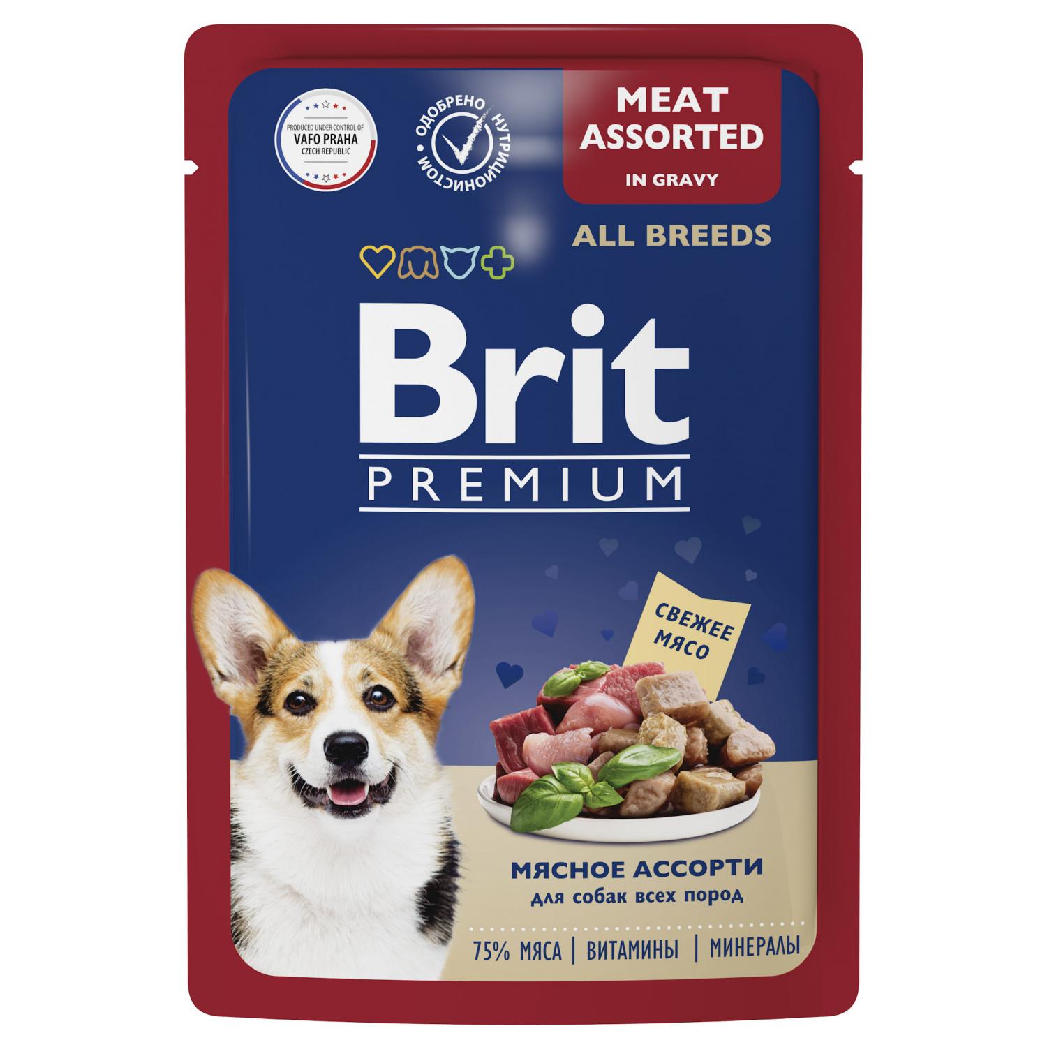 Консервы Brit Premium для взрослых собак всех пород мясное ассорти в соусе
