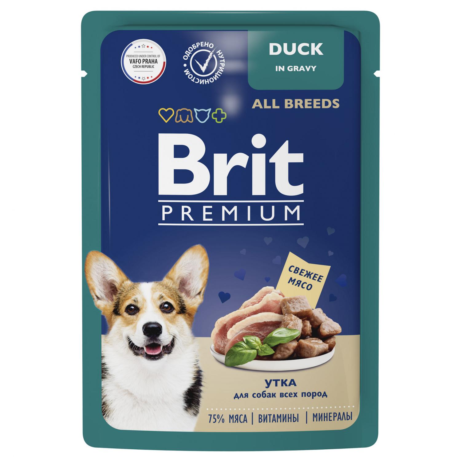 Полнорационный влажный корм премиум класса с уткой в соусе для взрослых собак всех пород. Нежные кусочки мяса в ароматном соусе - идеальное сочетание для полноценного и сбалансированного рациона. Паучи Brit Premium однозначно заинтересуют вашу собаку и станут для нее любимым блюдом. Влажный корм премиального качества содержит 75 % свежего мяса и все необходимые витамины и минералы для ежедневного рациона. Паучи отлично дополнят полнорационный сухой корм Brit Premium и внесут разнообразие в питание Вашего питомца.