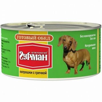 Консервы Четвероногий Гурман для собак, готовый обед потрошки с гречкой