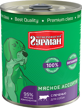 Консервы Четвероногий Гурман для собак, мясное ассорти с печенью