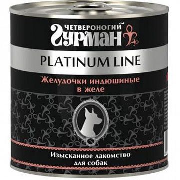 Консервы Четвероногий Гурман Platinum для собак, желудочки индюшиные в желе