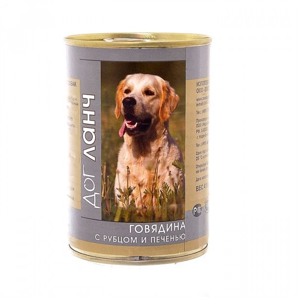 Консервы Dog Lunch для собак, говядина с рубцом и печенью в желе