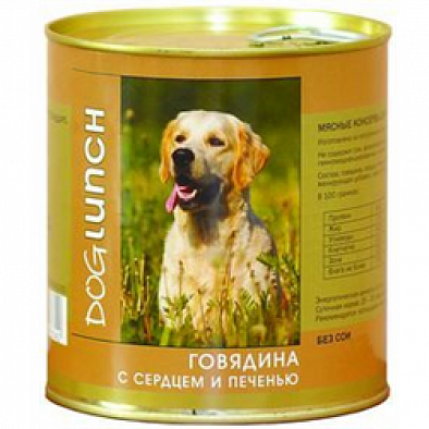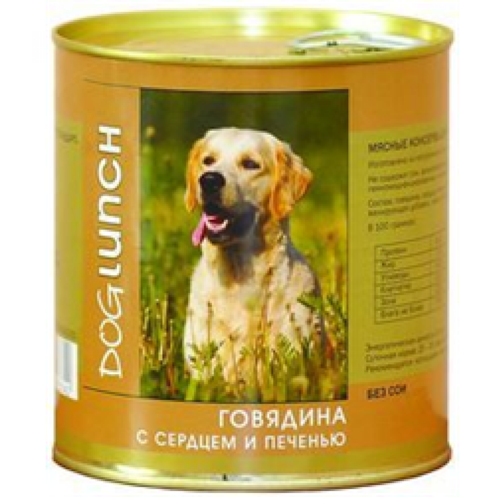 Консервы Dog Lunch для собак, говядина с сердцем и печенью в желе
