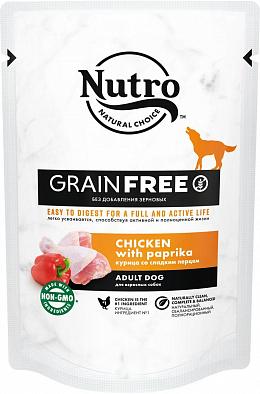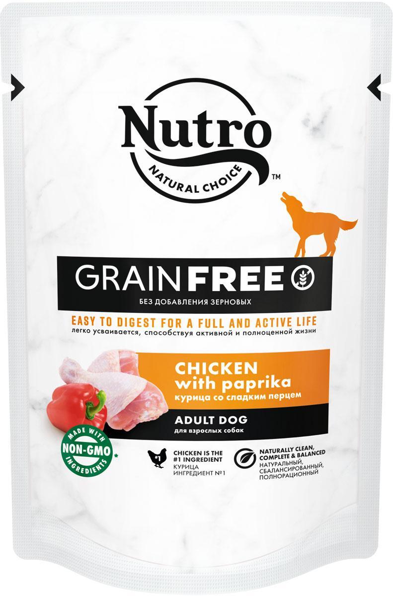 Влажный корм для взрослых собак NUTRO GRAIN FREE с курицей и сладким перцем сделан без добавления зерновых, ингредиент № 1 — курица (источник белка животного происхождения). Белок животного происхождения — естественный источник незаменимых аминокислот, необходимых вашему питомцу, а отсутствие зерновых в рецептуре поможет потреблять меньшее количество углеводов. Формат влажного корма позволит контролировать количество потребляемых калорий, помогая поддерживать здоровый вес. Хранить при температуре от +4 *С до +35 *С и относительной влажности воздуха не более 75 %.