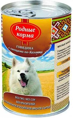 Консервы Родные Корма для собак, говядина с овощами по-казацки