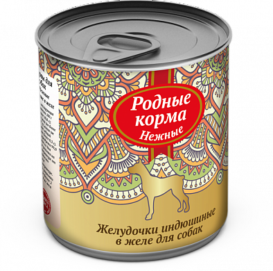 Консервы Родные Корма нежные желудочки индюшиные в желе для собак