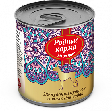 Консервы Родные Корма нежные желудочки куриные в желе для собак