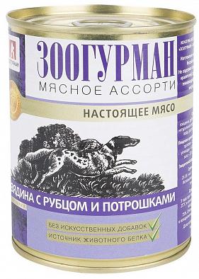 Консервы Зоогурман для собак, мясное ассорти говядина с рубцом и потрошками