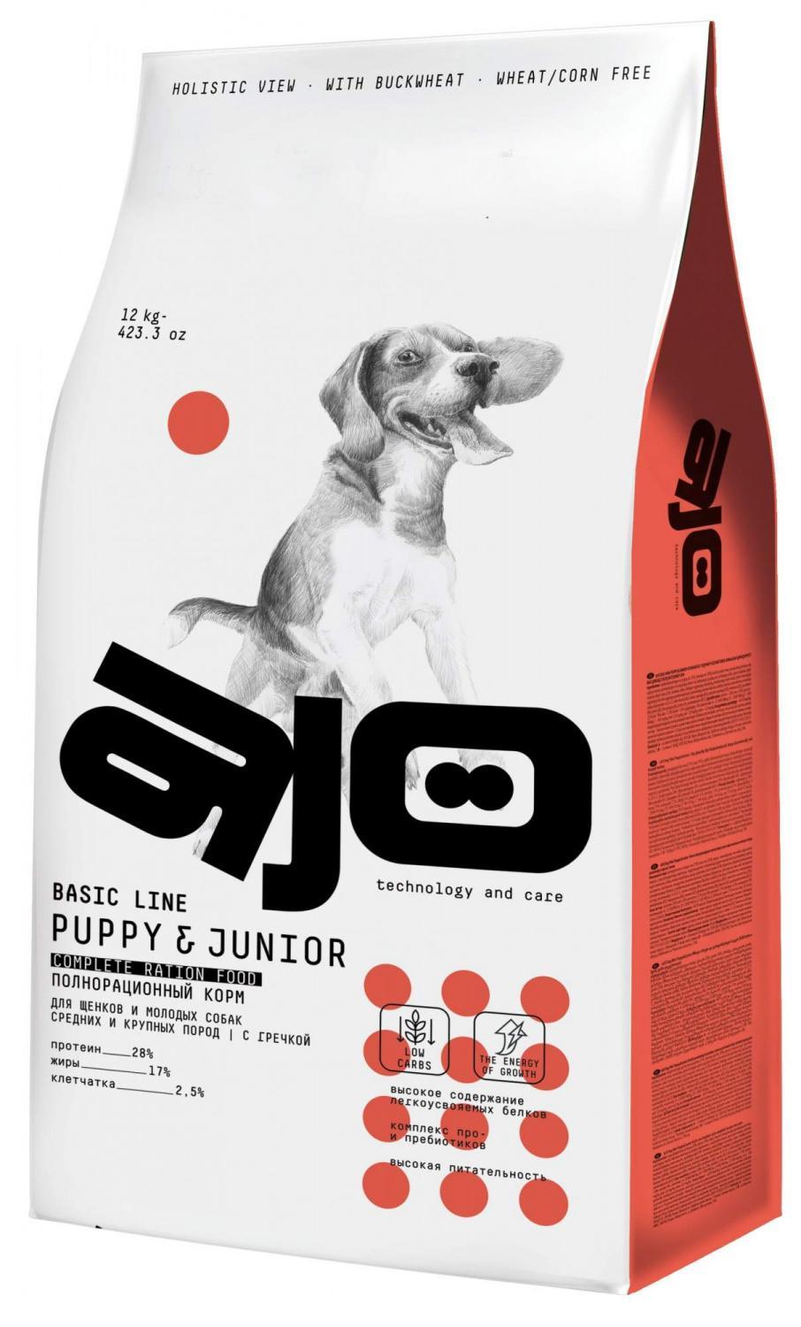 СУХОЙ ПОЛНОРАЦИОННЫЙ КОРМ С ГРЕЧКОЙ ДЛЯ ЩЕНКОВ И МОЛОДЫХ СОБАК СРЕДНИХ И КРУПНЫХ ПОРОД Вся продукция AJO® изготавливается на новейшем заводе, оснащенном сверхсовременным высокотехнологичным оборудованием, и соответствует мировым стандартам качества. Данная линейка представлена в самых оборачиваемых по весу упаковках. C ГРЕЧКОЙ Гречиха — одна из самых полезных круп, имеет высокую питательность, гипоаллергенность, антитоксические свойства, богата железом, магнием, калием, фосфором, витаминами группы В С РИСОМ Благоприятное влияние на кишечник за счёт обволакивающих свойств, укрепляет сердце и сосуды, богат железом и цинком, содержит клетчатку и важные для здоровья питомца аминокислоты. БРОККОЛИ Позитивно влияет на пищеварение, сердечно-сосудистую, иммунную системы. Обладает противовоспалительные свойствами. Защищает от аллергии. Укрепляет кости. ЗЕЛЕНЫЙ ЧАЙ Содержит марганец, хром, селен и цинк. Помогает снизить риск развития болезней сердца и сосудов, предотвращает кариес и образование камней в почках. ИНДЕЙКА Содержит витамины E, PP, группы B, аминокислоты и полезные микроэлементы. Нормализует обмен веществ. Укрепляет иммунную и сердечно-сосудистую систему. Улучшает выработку гемоглобина в крови. СВИНИНА Содержит магний, цинк, селен и лизин. Укрепляет сердечно-сосудистую систему. Поддерживает иммунные функций организма и сохраняет энергию.