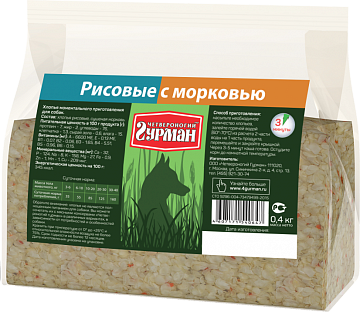 Сухой корм Четвероногий Гурман, каша Рисовая, с морковью пакет