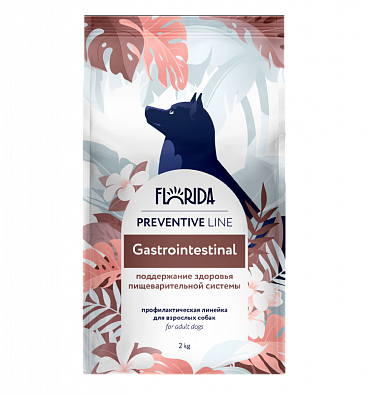Полнорационный сбалансированный корм для собак Florida Preventive Line Gastrointestinal предназначен для поддержания здоровой работы желудочно-кишечного тракта.