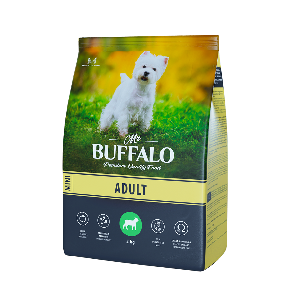 Полнорационный сухой корм Mr.Buffalo с ягненком для миниатюрных пород идеально подходит питомцам с чувствительным пищеварением. Оптимальный размер гранул идеально подходит для взрослых собак миниатюрных пород, а сбалансированный, легкоусвояемый состав корма удовлетворяет все их жизненные потребности.