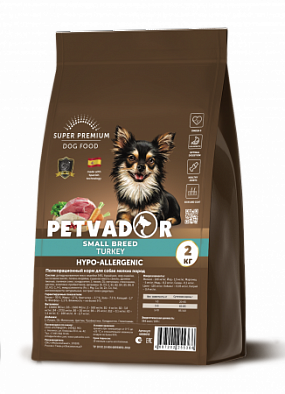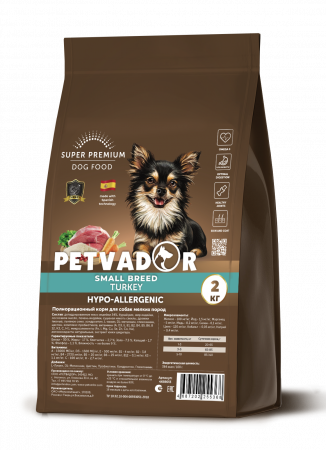 Полнорационное питание PETVADOR SMAL BREED разработано специально для взрослых собак мелких пород на основе легкоусвояемого мяса индейки. Индейка - это не только прекрасный источник высококачественного белка, но и возможность обеспечит организм маленькой подвижной собаки необходимыми микроэлементами и витаминами. Бурый рис - прекрасный источник клетчатки и сложных углеводов, содержащий большое количество витамина B. Обеспечит организм щенка необходимой энергией. Благодаря входящему в состав лососевому маслу, рацион PETVADOR SMAL BREED улучшит состояние кожи и шерсти питомца Глюкозамин и хондроитин – обеспечиват правильное развитие и функционирование хрящевой ткани и связок, будут способствать поддержанию опорно-двигательного аппарата в здоровом состоянии. Пробиотики благоприятно воздействуют на организм собаки повышая биологическую активность нормальной микрофлоры кишечника, гарантируя тем самым полноценный и правильный процесс пищеварения и усвоение питательных веществ. Оптимального размера гранулы (11 мм) помогают при разгрызании очищать зубы от налета и зубного камня.