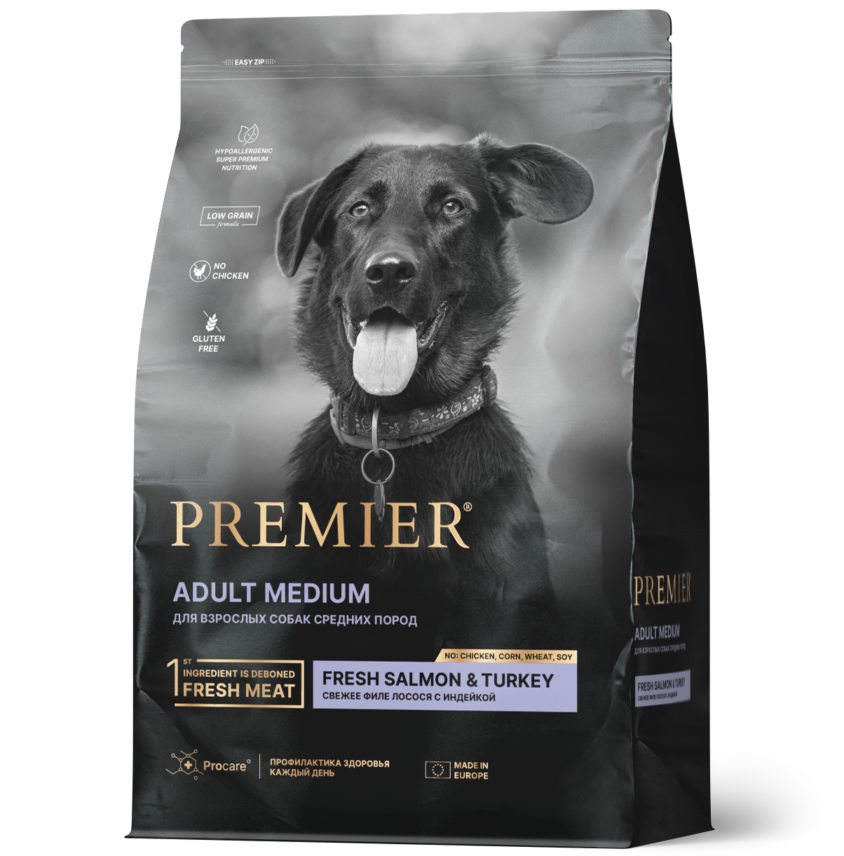 Сухой корм Premier Dog Salmon&Turkey ADULT Medium для взрослых собак средних пород с лососем и индейкой