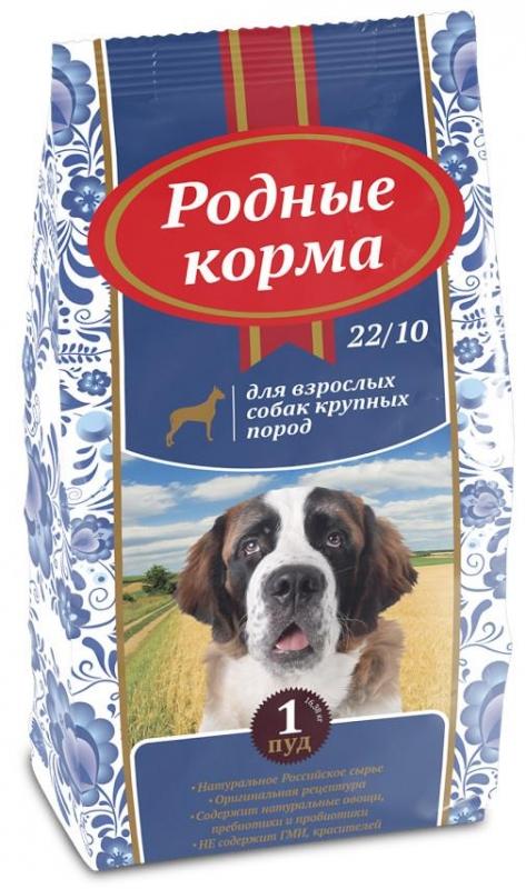 Сухой корм Родные Корма для взрослых собак крупных пород, курица