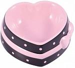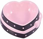 КерамикАрт миска керамическая для собак и кошек Сердечко 250 мл коричневая с розовым бантом