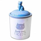 КерамикАрт бокс керамический для хранения корма Hug your cat 1650мл, бело-серая