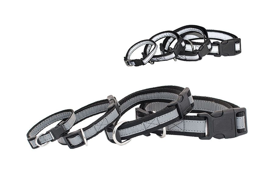 Ошейник из синтетической стропы с пришитой посередине светоотражающей лентой. Очень хорошо виден в темноте за счёт высокого коэффициента световозвращения ленты. Предназначен для ежедневного выгула животного.