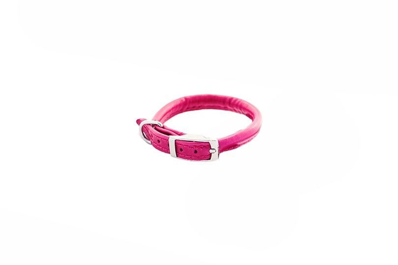 Круглый ошейник меньше вытирает шерсть у собаки. Фурнитура металлическая никелированная. Полукольцо сварено встык. Предназначен для ежедневного выгула животного.