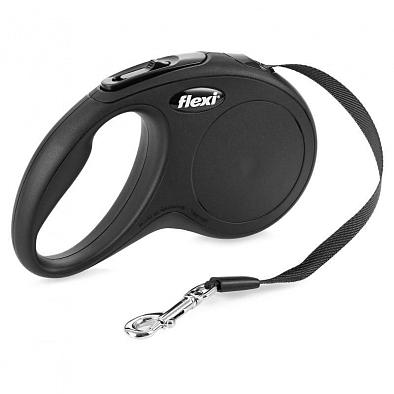Рулетка состоит из твердой ручки, ременного поводка длиной 5м и хромированной застежки.