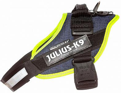 Julius-K9 шлейка для собак IDC®-Powerharness 1 (63-85см/ 23-30кг), джинса-зеленый неон