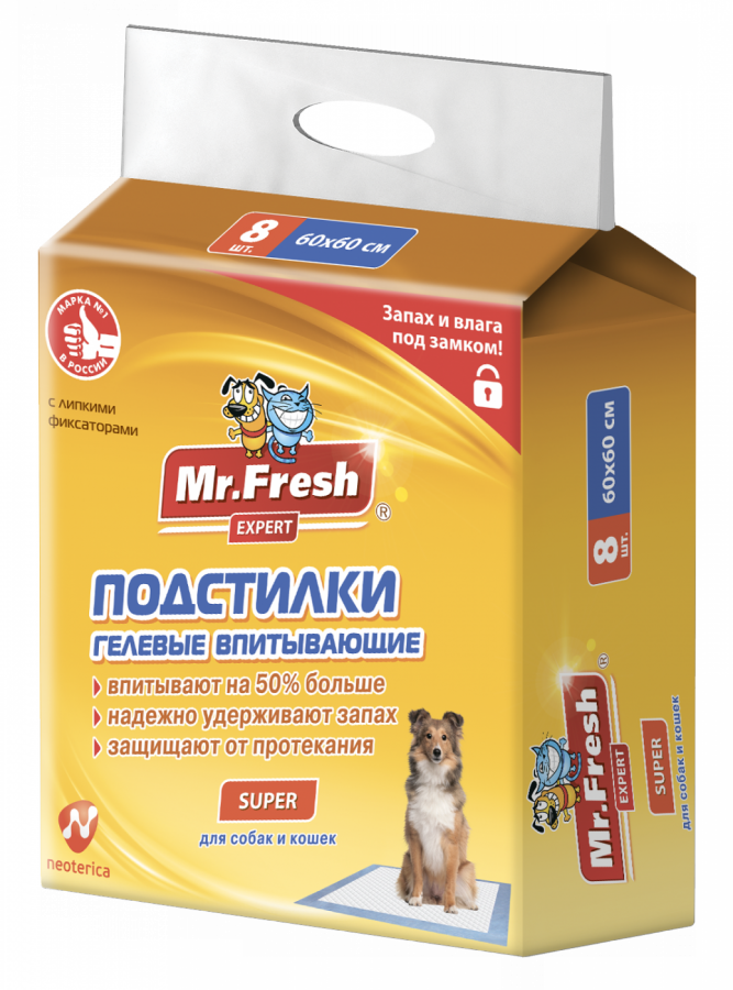 Gentlepets Подстилки впитывающие одноразовые для животных с суперабсорбентом 60*60*15шт